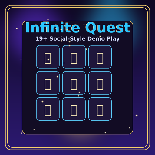 Infinite Quest is a social-style game made for entertainment only. It uses virtual coins, contains no real money gambling, and is limited to adults 19+.